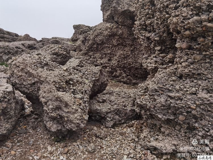 据资料记载:位于艾家镇罗镜滩下游琵琶垴的砂砾岩是个地质遗迹。早在上世纪六十年代就被地质部门命名为“罗镜滩组",系宜昌境内典型的白垩纪地质遗存,距今已有几千万年的历史。罗镜滩组为灰红、紫红、灰色厚层块状砾岩。每当雨后或浪花拍击砾岩,在阳光的照耀下,砾岩会光彩夺目,将把你引到远古时代……