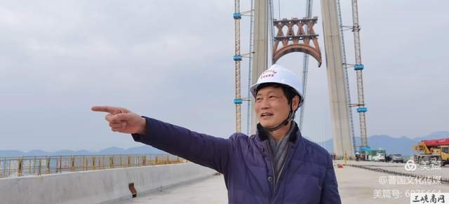 2021年3月24日上午,晴空万里,伍家岗大桥一片繁忙,我们戴上安全帽,笔者和宜昌市原法院副院长赵在春很自豪的跟着周昌栋参观了这座城市大桥。